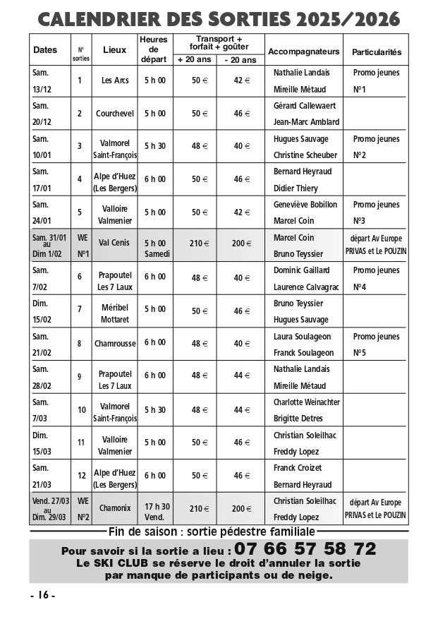Calendrier sorties & WE